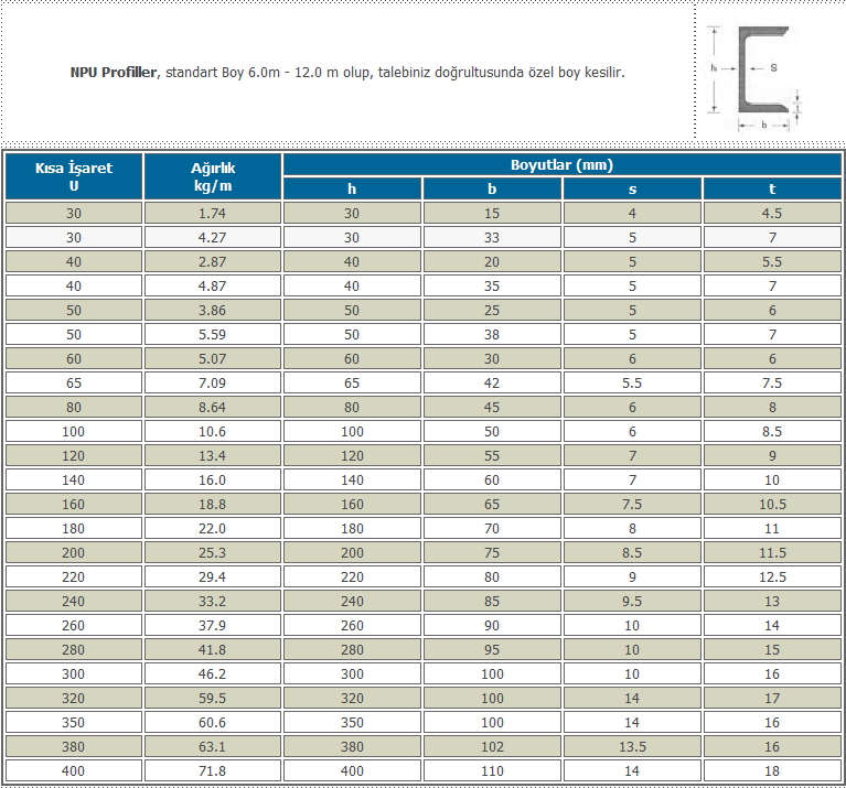 NPU, NPI PROFİLLER, npu profil, UPN Demir, IPN Demir,T Demir, Yuvarlak Demir, Baklavalı Sac, Levha Sac, DKP Sac, HEA-HEB-HEM Profiller, IPE Profiller, UPE Profiller, Çelik ÇekmeBoru